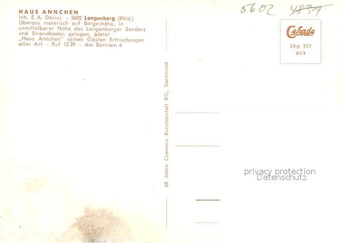 43496420 Langenberg Velbert Kirche Bismarckturm Sender Schwimmbad Freibad postalisch nicht gelaufen Erhaltung siehe scans [FriedD77] KatCode: 11110005158032