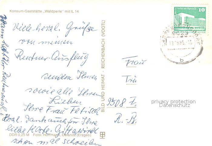 73723003 alte Postkarte Langenbernsdorf Konsum Gaststaette Waldperle mit IL 14 postalisch gelaufen Erhaltung siehe scans [WerneD78] KatCode: 11110014193190