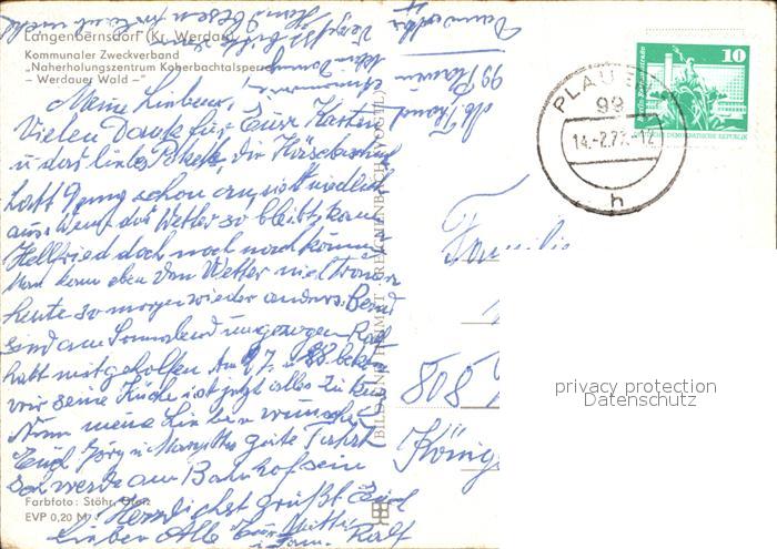 72543080 alte Postkarte Langenbernsdorf Naherholungszentrum Koberbachtalsperre Werdauer Wald postalisch gelaufen Erhaltung siehe scans [KathaD75 kv015box] KatCode: 11110014193190