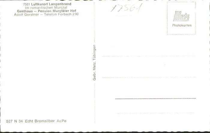 40764862 Langenbrand Forbach Gasthof Pension Murgtäler Hof KatCode 11110008216013