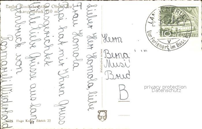 11739029 alte Postkarte Langenbruck BL Basler Kinderheitsstaette Obere Au postalisch gelaufen Erhaltung siehe scans KatCode: 11470040100766