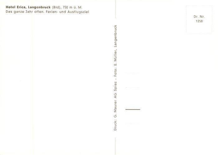 13917016 Langenbruck BL Hotel Erica postalisch nicht gelaufen Erhaltung siehe scans [WerneD78] KatCode: 11470040100766