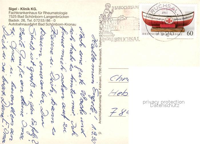 73335172 alte Postkarte Langenbruecken Bad Schoenborn Fachkrankenhaus Springbrunnen Schwimmbad postalisch gelaufen Erhaltung siehe scans [WerneD78] KatCode: 11110008215100