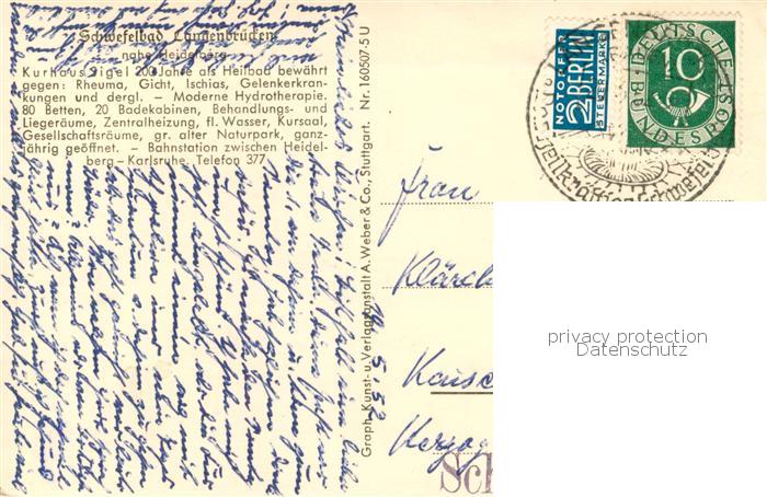73771827 alte Postkarte Langenbruecken Bad Schoenborn Kurhaus mit Blick auf die Trinkhalle postalisch gelaufen Erhaltung siehe scans [WerneD78] KatCode: 11110008215100