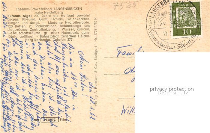 73568814 alte Postkarte Langenbruecken Bad Schoenborn Thermal Schwefelbad Kurhaus Sigel Fontaene postalisch gelaufen Erhaltung siehe scans [FriedD77] KatCode: 11110008215100