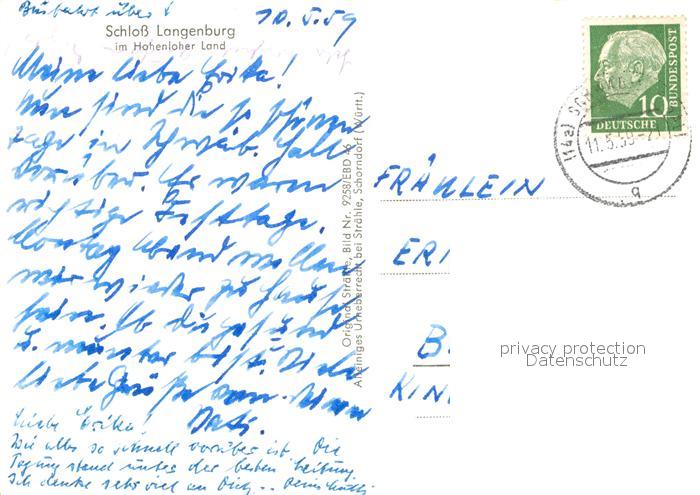 73099283 alte Postkarte Langenburg Wuerttemberg Fliegeraufnahme Schloss Hohenloher Land postalisch gelaufen Erhaltung siehe scans [KathaD81] KatCode: 11110008127047