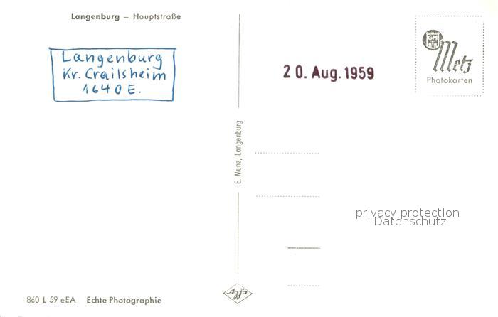 73763990 Langenburg Wuerttemberg Hauptstrasse postalisch nicht gelaufen Erhaltung siehe scans [WerneD78] KatCode: 11110008127047