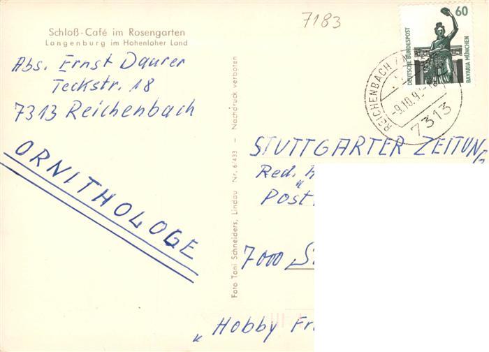 73870729 alte Postkarte Langenburg Wuerttemberg Schloss-Cafe im Rosengarten postalisch gelaufen Erhaltung siehe scans [FriedD77] KatCode: 11110008127047