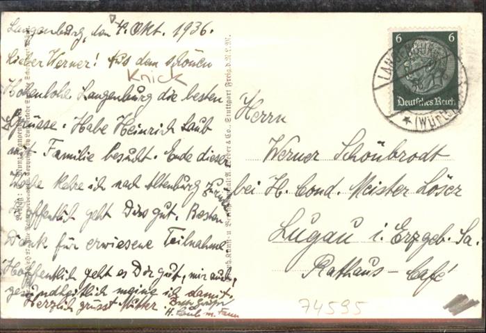 71026852 alte Postkarte Langenburg Wuerttemberg Schloss Fliegeraufnahme postalisch gelaufen KatCode: 11110008127047