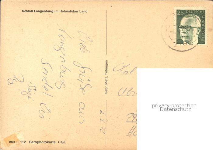 72573738 alte Postkarte Langenburg Wuerttemberg Schloss Hohenloher Land postalisch gelaufen Erhaltung siehe scans [KathaD79] KatCode: 11110008127047