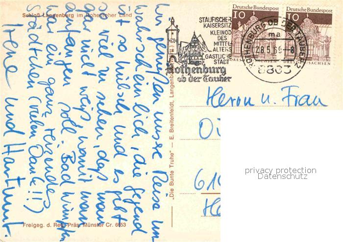 72878602 alte Postkarte Langenburg Wuerttemberg Schloss Langenburg Fliegeraufnahme postalisch gelaufen Erhaltung siehe scans [FriedD77] KatCode: 11110008127047