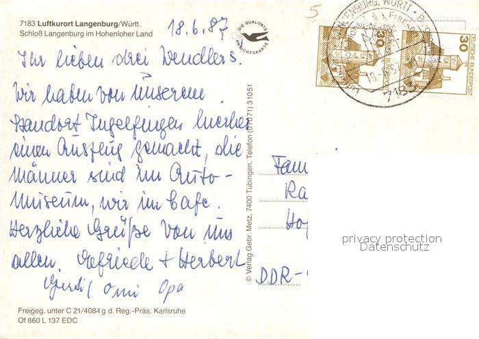 73056856 alte Postkarte Langenburg Wuerttemberg Schloss Langenburg Fliegeraufnahme postalisch gelaufen Erhaltung siehe scans [WerneD78] KatCode: 11110008127047