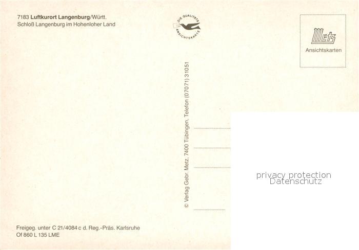 73617710 Langenburg Wuerttemberg Schloss Langenburg Hohenloher Land Fliegeraufnahme postalisch nicht gelaufen Erhaltung siehe scans [FriedD77] KatCode: 11110008127047