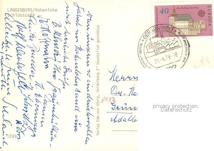 73144893 alte Postkarte Langenburg Wuerttemberg Schlosscafe Terrasse postalisch gelaufen Erhaltung siehe scans [FriedD77] KatCode: 11110008127047
