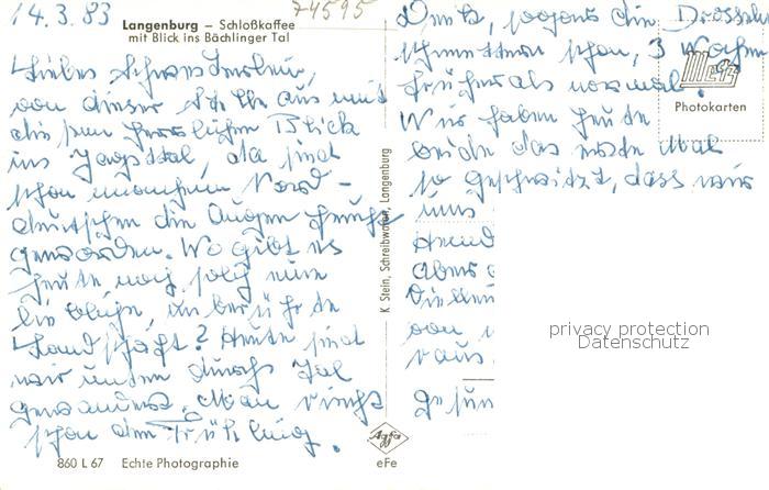 73759552 Langenburg Wuerttemberg Schlosskaffee m. Baechlinger Tal postalisch nicht gelaufen Erhaltung siehe scans [LiesaD40] KatCode: 11110008127047