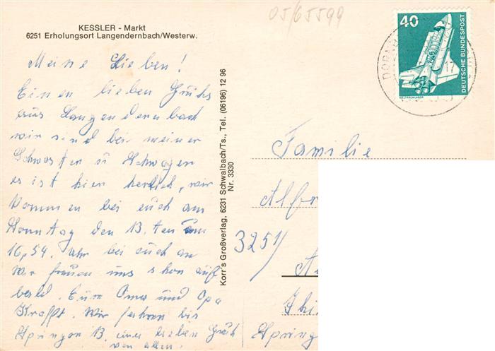 73871400 alte Postkarte Langendernbach Dornburg Panorama Kirche Kessler Markt Hotel postalisch gelaufen Erhaltung siehe scans [WerneD78] KatCode: 11110006533004