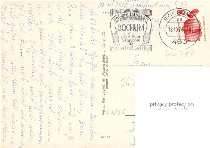 73866088 Langendreer Bochum Volkspark Kirche Schwimmbad postalisch gelaufen Erhaltung siehe scans [WerneD78] alte Postkarte Wern Katcode 11110005911000