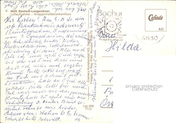 72158294 alte Postkarte Langendreer Knappschaftskrankenhaus Fliegeraufnahme postalisch gelaufen Erhaltung siehe scans KatCode: 11110005911000