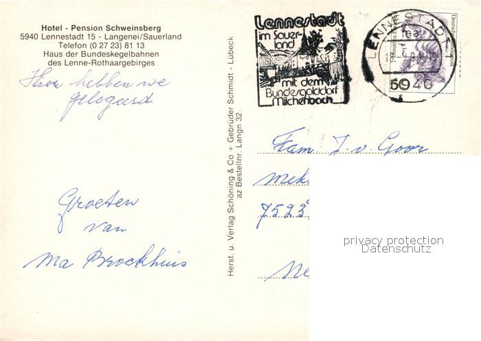 73045878 alte Postkarte Langenei Hotel Schweinsberg Gaststube Kegelbahn Speisesaal postalisch gelaufen Erhaltung siehe scans [WerneD78] KatCode: 11110005966020