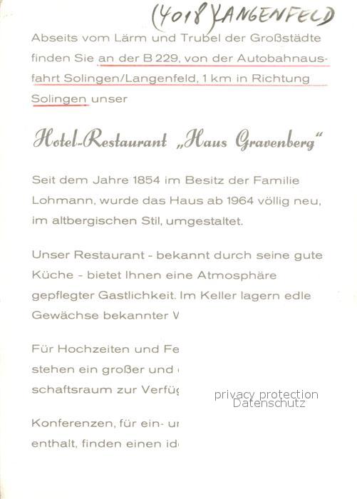 73339754 Langenfeld Rheinland Hotel Restaurant Haus Gravenberg Wild postalisch nicht gelaufen Werbekarte (keine Postkarte) Erhaltung siehe scans [FriedD77] KatCode: 11110005158020