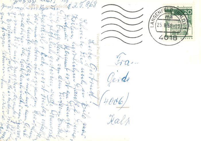 73883168 Langenfeld Rheinland Kath Kirche Schwanenmuehle Park Seedorferstrasse Graven Solinger Strasse postalisch gelaufen Erhaltung siehe scans [FriedD77] alte Postkarte Frie Katcode 11110005158020
