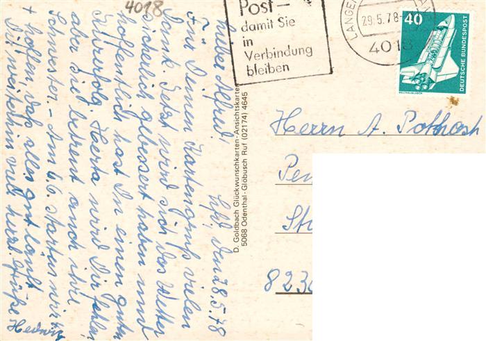73913083 Langenfeld Rheinland Martinplatz Jugendheim Realschule Berliner Platz Haus Graven Goethestrasse postalisch gelaufen Erhaltung siehe scans [FriedD77] alte Postkarte Frie Katcode 11110005158020