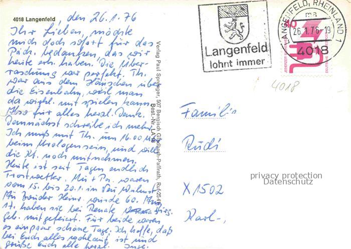 74014024 alte Postkarte Langenfeld Rheinland NRW Kopernikus-Schule Hauptstrasse Markt Baumallee Karstadt Hochhaus Eichenfeldstrasse Wohnsiedlung postalisch gelaufen Erhaltung siehe scans [FriedD77] KatCode: 11110005158020