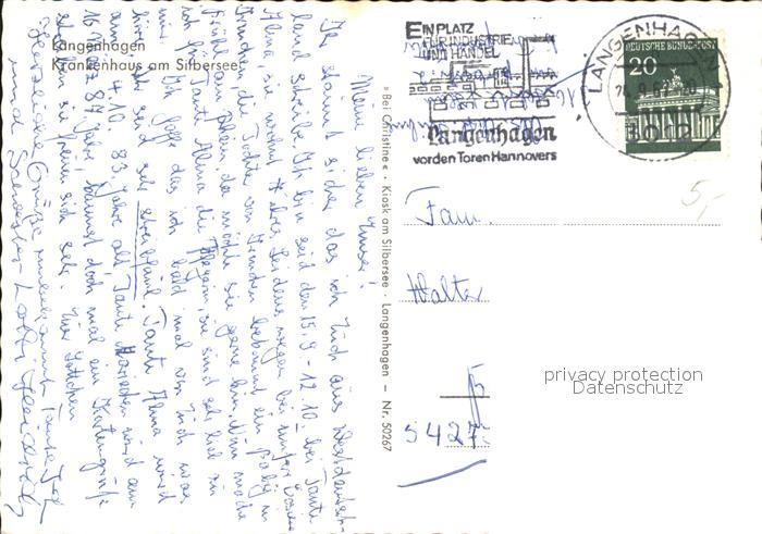 72608373 alte Postkarte Langenhagen Hannover Krankenhaus am Silbersee postalisch gelaufen Erhaltung siehe scans [AndreD76] KatCode: 11110003241010