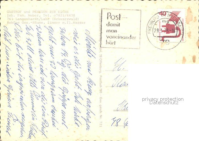 71830897 alte Postkarte Langenhard Gasthof-Pension zur Eiche postalisch gelaufen KatCode: 11110008317065
