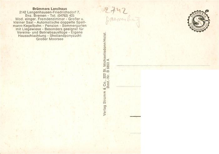 73880569 Langenhausen Gnarrenburg Bruemmers Landhaus Terrasse Kanal Ponys postalisch nicht gelaufen Erhaltung siehe scans [WerneD78] KatCode: 11110003357016