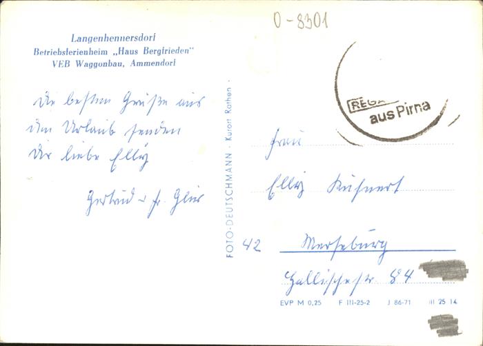 41261344 Langenhennersdorf Betriebsferienheim Haus Bergfrieden VEB Waggonbau Ammdendorf KatCode 11110014287015