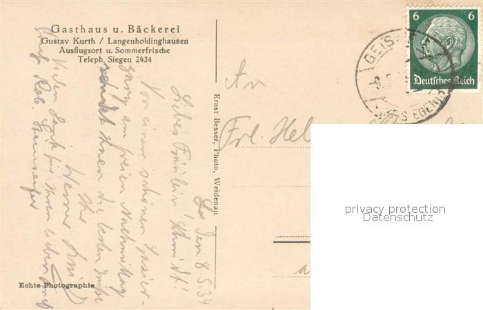 33708425 alte Postkarte Langenholdinghausen Gasthaus und Baeckerei Kurth postalisch gelaufen Erhaltung siehe scans [WerneD78] KatCode: 11110005970040