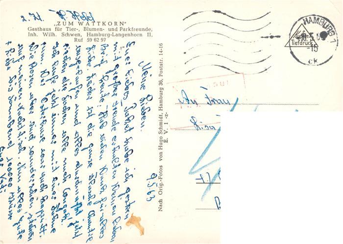 73878514 alte Postkarte Langenhorn Hamburg Gasthaus zum Wattkorn postalisch gelaufen Erhaltung siehe scans [FriedD77] KatCode: 11110002000000