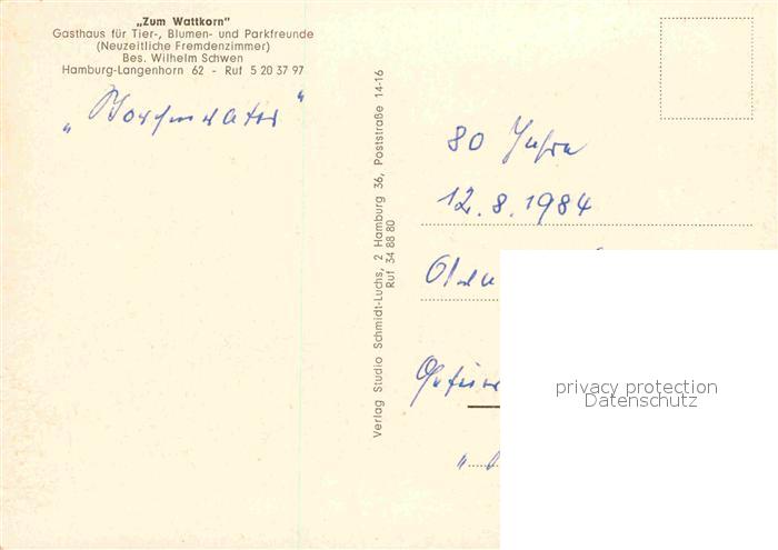 72631752 Langenhorn Hamburg Restaurant Zum Wattkorn postalisch nicht gelaufen Erhaltung siehe scans [LiesaD40] KatCode: 11110002000000