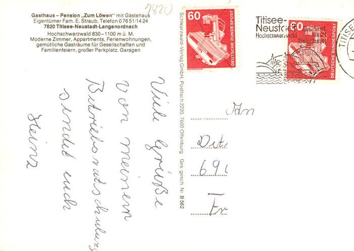 73928838 alte Postkarte Langenordnach Titisee-Neustadt Gasthaus Loewen Unteres Wirtshaus Terrasse Gastraum postalisch gelaufen Erhaltung siehe scans [WerneD78] KatCode: 11110008315113