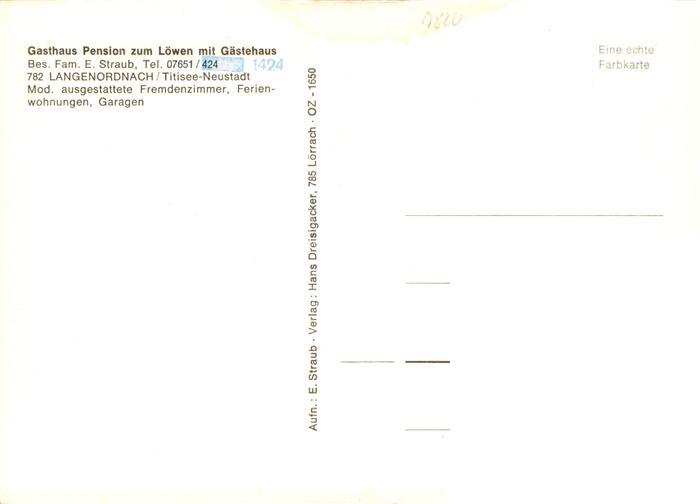 73929480 Langenordnach Titisee-Neustadt Gasthaus Pension zum Loewen mit Gaestehaus postalisch nicht gelaufen Erhaltung siehe scans [WerneD78] KatCode: 11110008315113