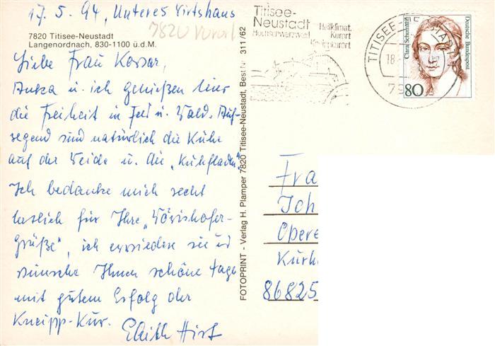 73929513 alte Postkarte Langenordnach Titisee-Neustadt Panorama Hans Thoma Tanne postalisch gelaufen Erhaltung siehe scans [WerneD78] KatCode: 11110008315113