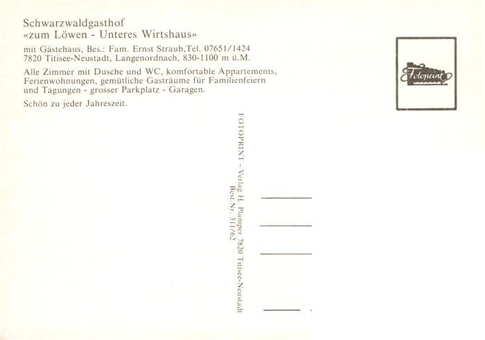 73929177 Langenordnach Titisee-Neustadt Schwarzwaldgasthof zum Loewen Unteres Wirtshaus mit Gaestehaus Hans Thoma Tanne postalisch nicht gelaufen Erhaltung siehe scans [WerneD78] KatCode: 11110008315113