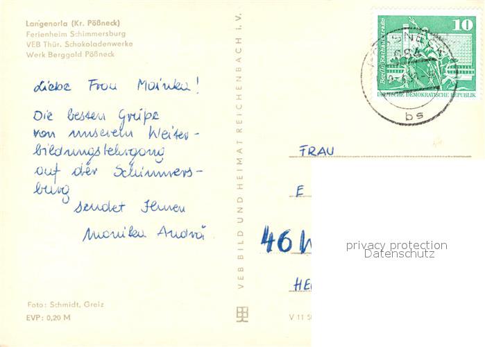 73614316 alte Postkarte Langenorla Ferienheim Schlimmersburg Werk Berggold Poessneck postalisch gelaufen Erhaltung siehe scans [WerneD78] KatCode: 11110016075054