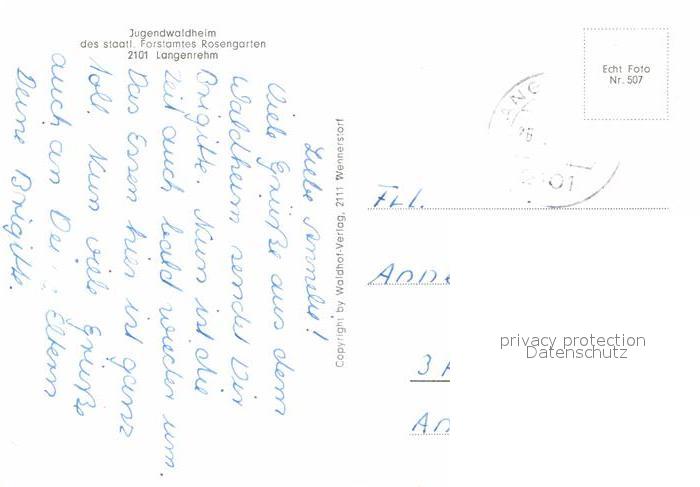 72793806 alte Postkarte Langenrehm Jugendwaldheim postalisch gelaufen Erhaltung siehe scans [AndreD76] KatCode: 11110003353029