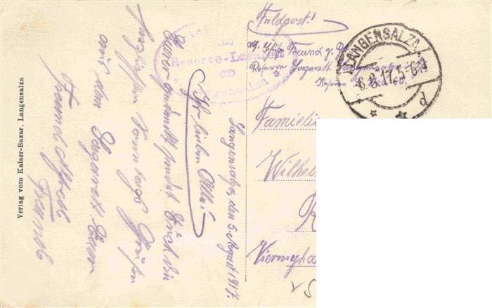 73974649 alte Postkarte Langensalza Bad Kaiserstrasse postalisch gelaufen Feldpost – Stempel Erhaltung siehe scans [FriedD77] KatCode: 11110016064003