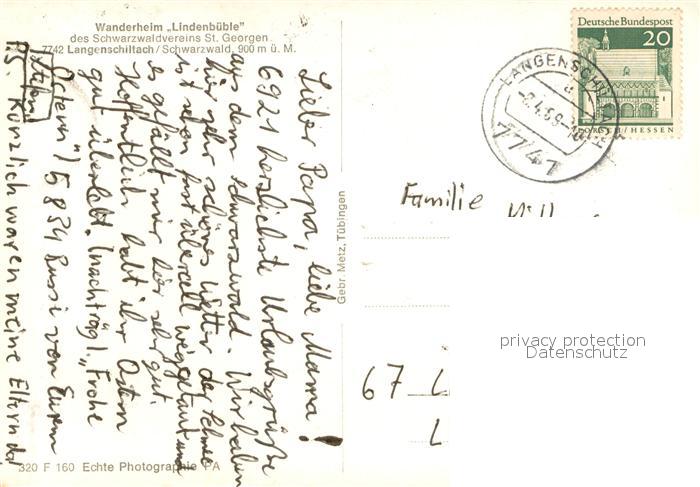 73686547 alte Postkarte Langenschiltach Wanderheim Lindenbueble des Schwarzwaldvereins St. Georgen im Schwarzwald postalisch gelaufen Erhaltung siehe scans [FriedD77] KatCode: 11110008326052