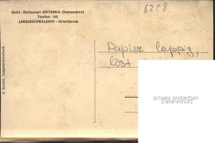 41581348 Langenschwalbach Hotel Restaurant Britannia Damensalon postalisch nicht gelaufen Erhaltung siehe scans Alte Ansichtskarte Postkarte Stef Katcode 11110006439002