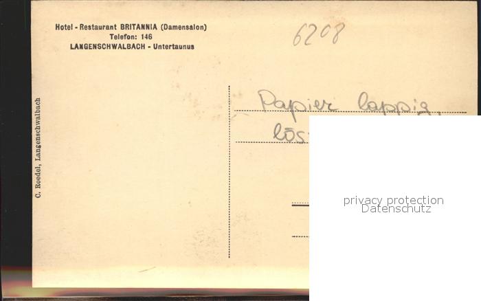 41581354 Langenschwalbach Hotel Restaurant Britannia Damensalon postalisch nicht gelaufen Erhaltung siehe scans Alte Ansichtskarte Postkarte Stef Katcode 11110006439002