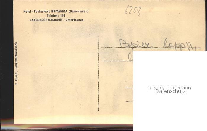 41581347 Langenschwalbach Hotel Restaurant Damensalon Britannia postalisch nicht gelaufen Erhaltung siehe scans Alte Ansichtskarte Postkarte Stef Katcode 11110006439002