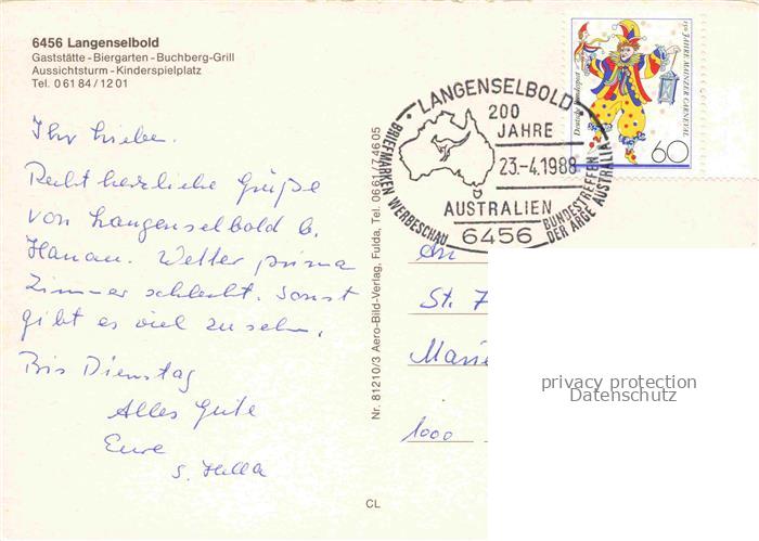 74020965 alte Postkarte Langenselbold Gaststaette Biergarten Buchberg Grill Aussichtsturm Kinderspielplatz postalisch gelaufen Erhaltung siehe scans [FriedD77] KatCode: 11110006435017