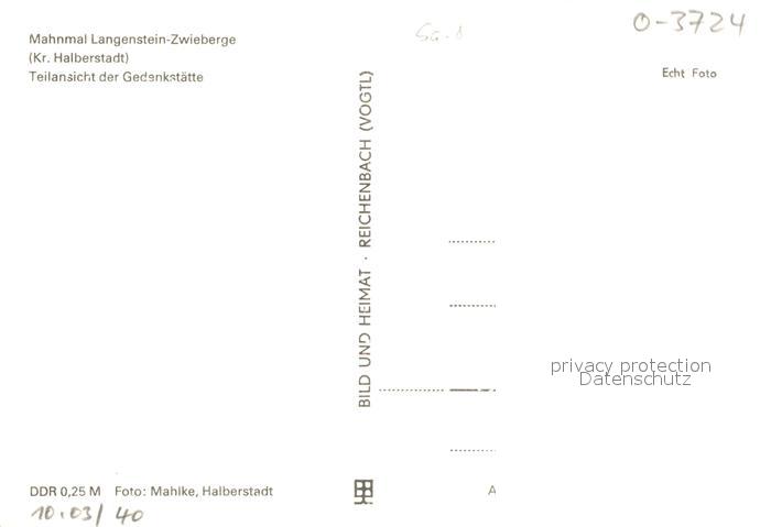 73046227 Langenstein Harz Mahnmal Zwieberge Gedenkstaette postalisch nicht gelaufen Erhaltung siehe scans [KathaD81] KatCode: 11110015085205
