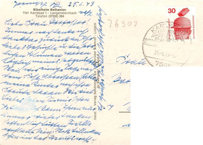 73898065 alte Postkarte Langensteinach Bibelheim Bethanien postalisch gelaufen Erhaltung siehe scans [WerneD78] KatCode: 11110009575168