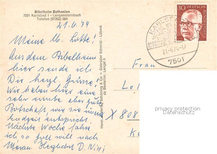 73644997 alte Postkarte Langensteinbach Karlsbad Bibelheim Bethanien postalisch gelaufen Erhaltung siehe scans [WerneD78] KatCode: 11110008215096