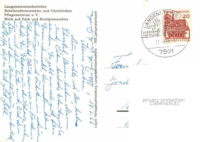 72673031 alte Postkarte Langensteinbach Karlsbad Bibelkonferenzstaette postalisch gelaufen Erhaltung siehe scans [AndreD76] KatCode: 11110008215096
